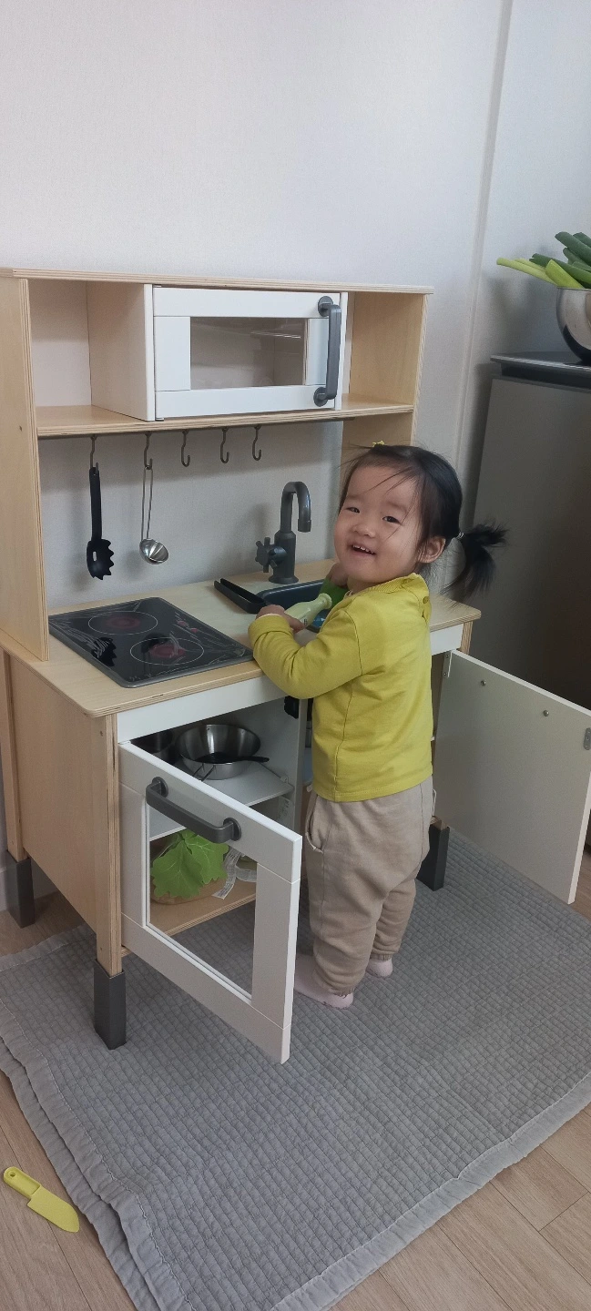 장모님은 그게 얼마나 하겠냐며 주방놀이 장난감을 사주겠다고 하셨지만, 아내의 만류에 막혔다. 아내의 그런 성격이 어디서 왔겠는가. 장모님도 아내의 그런 합리적인 생각과 소비패턴을 누구보다 잘 이해하고 계셨다. 그러던 와중에 우리 엄마도 주방놀이를 사주겠다고 했다. 나는 대답하지 않았다. 대신 링크를 보냈다. 아내의 합리적인 고민은 아내만의 것일 뿐, 나와는 상관없었다. 내 돈으로 사는 것도 아닌데 도대체 무얼 고민한단 말인가. 장모님이 아내에게 막힌 것까지 확인된 상황이어서 더더욱 고민할 필요가 없었다. 전에 없던 친절함까지 샘솟아 제품명과 구입처까지 상세하게 엄마에게 보내드렸다. 그리고 오늘, 엄마는 주방놀이를 우리집까지 배송해주었다.