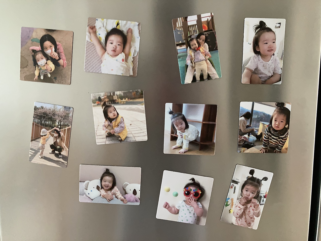 부모님 댁 냉장고에는 조카(누나의 자녀) 사진이 한가득 붙어있다. 부모님에게는 첫 손주이자 한동안 같이 살기도 했고, 지금은 외국에 있어 영상통화로만 얼굴을 보는 터라 항상 아쉬워하는 부모님을 위해 누나가 사진을 자석으로 된 액자에 넣어 여러 개 만들어 보냈다고 한다. 자석으로 된 액자를 신기해하는 나에게 엄마는 도은이 사진도 몇 장 저렇게 만들어달라고 했다. 알겠다고 한 것이 벌써 몇 달 전인데, 얼마 전 시골 가기 전에야 그게 떠올라 부랴부랴 자석액자를 사려고 보니 웬걸, 잘 팔지를 않았다.