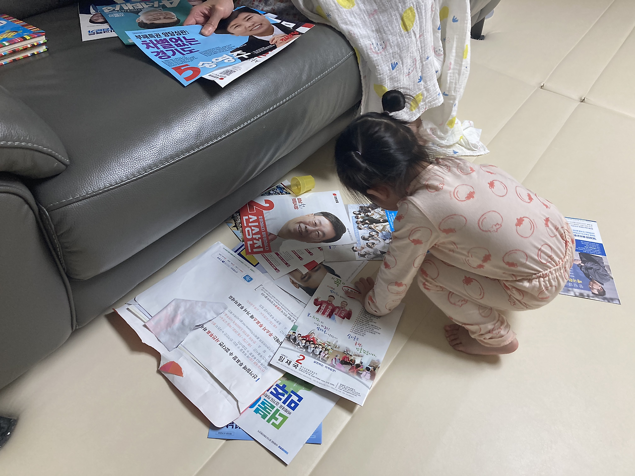 - 민주시민으로 거듭나는 도은 : 곧 지방선거가 있다고 한다. 당연히 몰랐고, 관심도 없었는데 우편으로 선거 홍보물이 와서 알았다. 도은이는 그 홍보물들에 관심이 많았고, 오늘 그걸 다 늘어놓고는 이리저리 만지고 놀았다. 덕분에 나와 아내도 홍보물들을 관심 있게 볼 수 있었다. 하지만 누구를 뽑아야 할지는 잘 모르겠어서, 도은이한테 골라달라고 해야겠다.