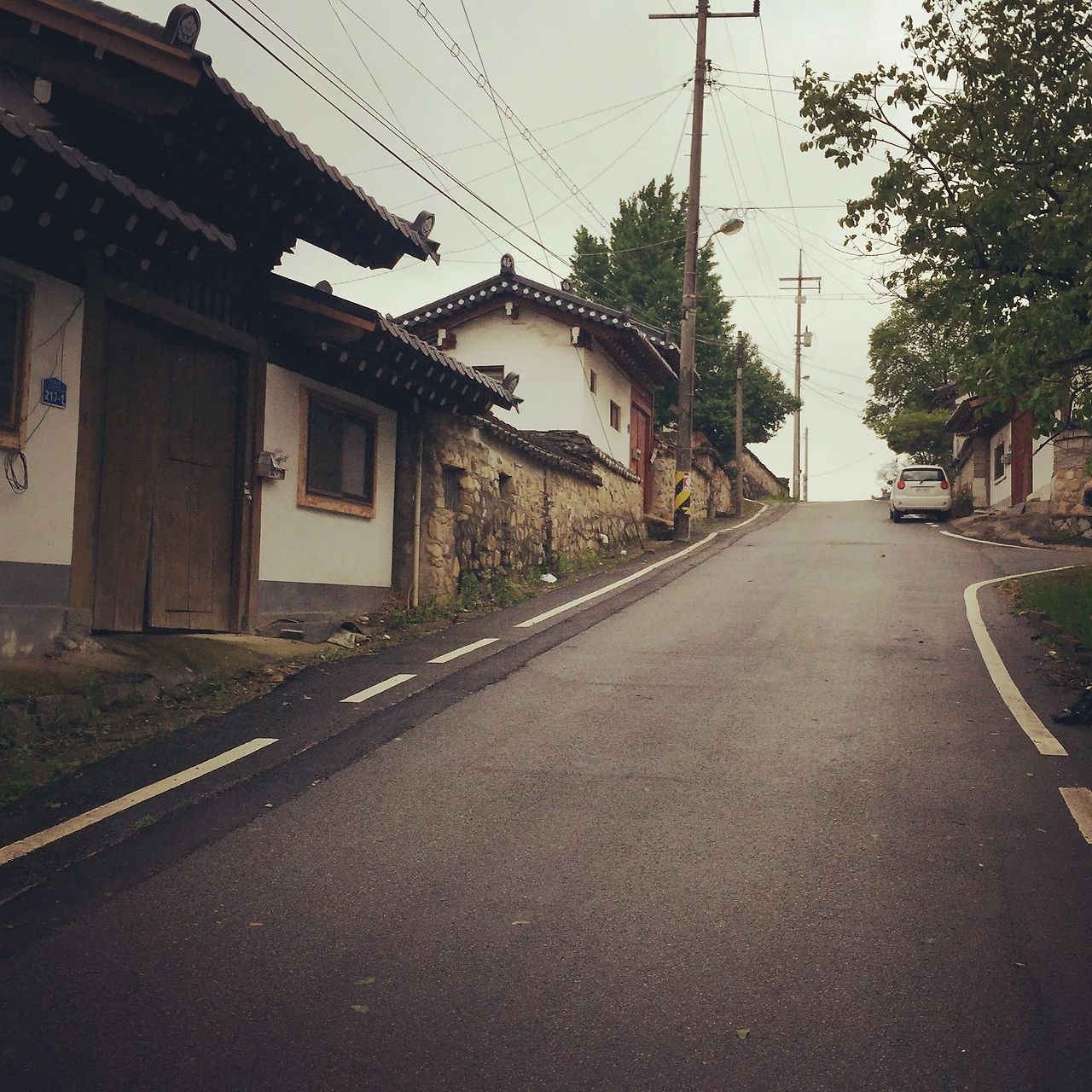 일주일째 걷다 보니 내 몸의 템포를 조금 알 것 같다. 그래서 다리가 아프든 혹은 버틸 만 하든 주기적으로 쉬어줘야 한다는 사실도 깨달았다. 한 시간에 5분에서 10분 정도, 거리로 치면 4 내지 5 킬로미터마다 쉬어가는 게 나에게 딱 적당했다. (이렇게 표현하기 웃기지만) 여기서 도보여행의 팁 하나. 아무래도 가다가 앉을 곳이 나오면 쉬어가기 참 좋다. 그런데 종종 이런 경우가 있다. 걸은 지 한 시간이 조금 못 미쳤을 때, 이를테면 45분, 50분 걸었는데 앉을 곳이 나오면 처음에는 지나쳤다. 쉬기로 생각한 한 시간이 안됐기 때문에 말이다. 그런데 간혹, 그다음 한동안 앉을 곳이 나타나지 않는 경우가 있다. 그런 상황을 몇 번 겪고 나니 융통성을 발휘하게 된다. 생각한 시간이나 거리에 도달하지 못했어도 앉을 곳이 나오면 일단 쉬었다 간다. 그리고 앉을 곳 중 최고는 역시 버스정류장이다. 의자가 길쭉해 다리를 쭉 펴볼 수 있고, 지붕도 있어 오늘 같이 비 오는 날에도 좋은 휴식처가 되어준다.