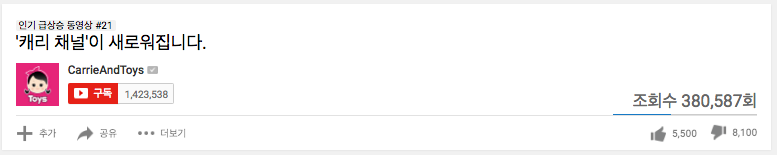 1대 캐리 언니가 떠난 이후에 합류한 2대 캐리가 어느 정도 인기를 얻을지 가늠할 수 없지만 분명한 건 1대를 뛰어넘기 위해서는 엄청난 노력과 결과가 있어야 할 것이다. 그리고 이러한 상황을 이겨내야 MCN 비즈니스의 새로운 역할을 제시할 수 있을 것으로 판단한다. 물론 새로운 포맷은 적응될 것이고 구독과 시청은 여전히 이어질 것이다. 다만 핑크퐁과 같은 새로운 콘텐츠로 이어질 가능성이 더 높아졌다.