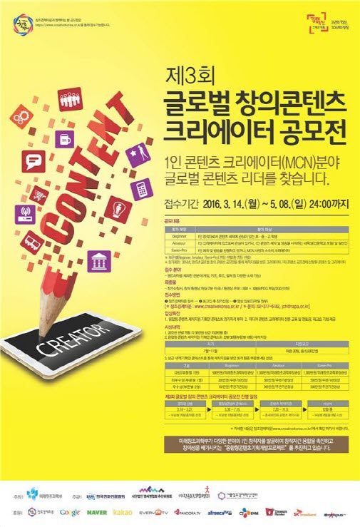 또한 매년 개최되는 크리에이터 지원사업에서는 직접 제작비를 제공하고 있으며, 크리에이터 공모전에 선정될 경우 연말에 개최되는 과학기술정보통신부에서 개최하는 K-ICT 수상의 영예도 얻을 수 있다.
