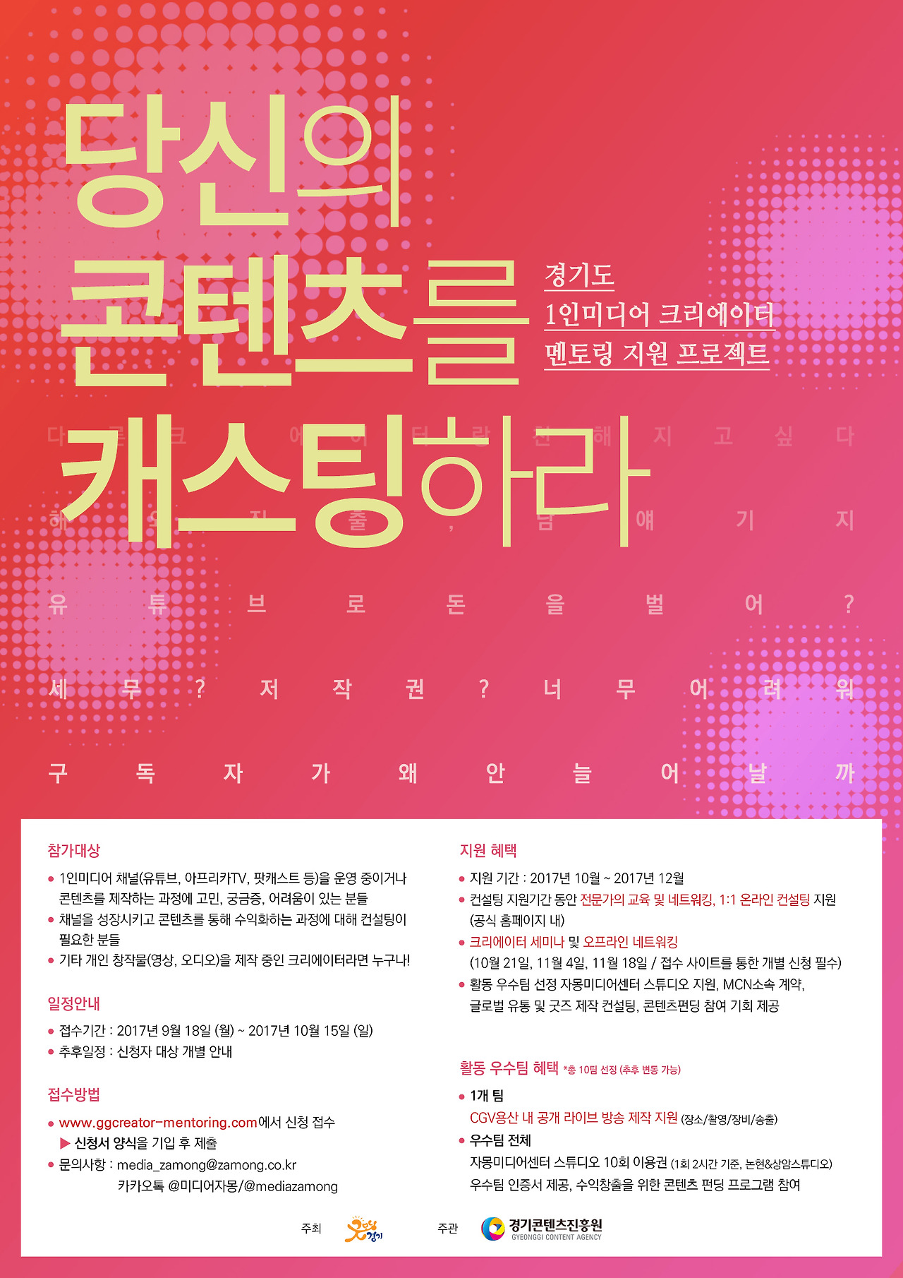 지원 프로그램: 1인미디어 콘텐츠 크리에이터 공모전