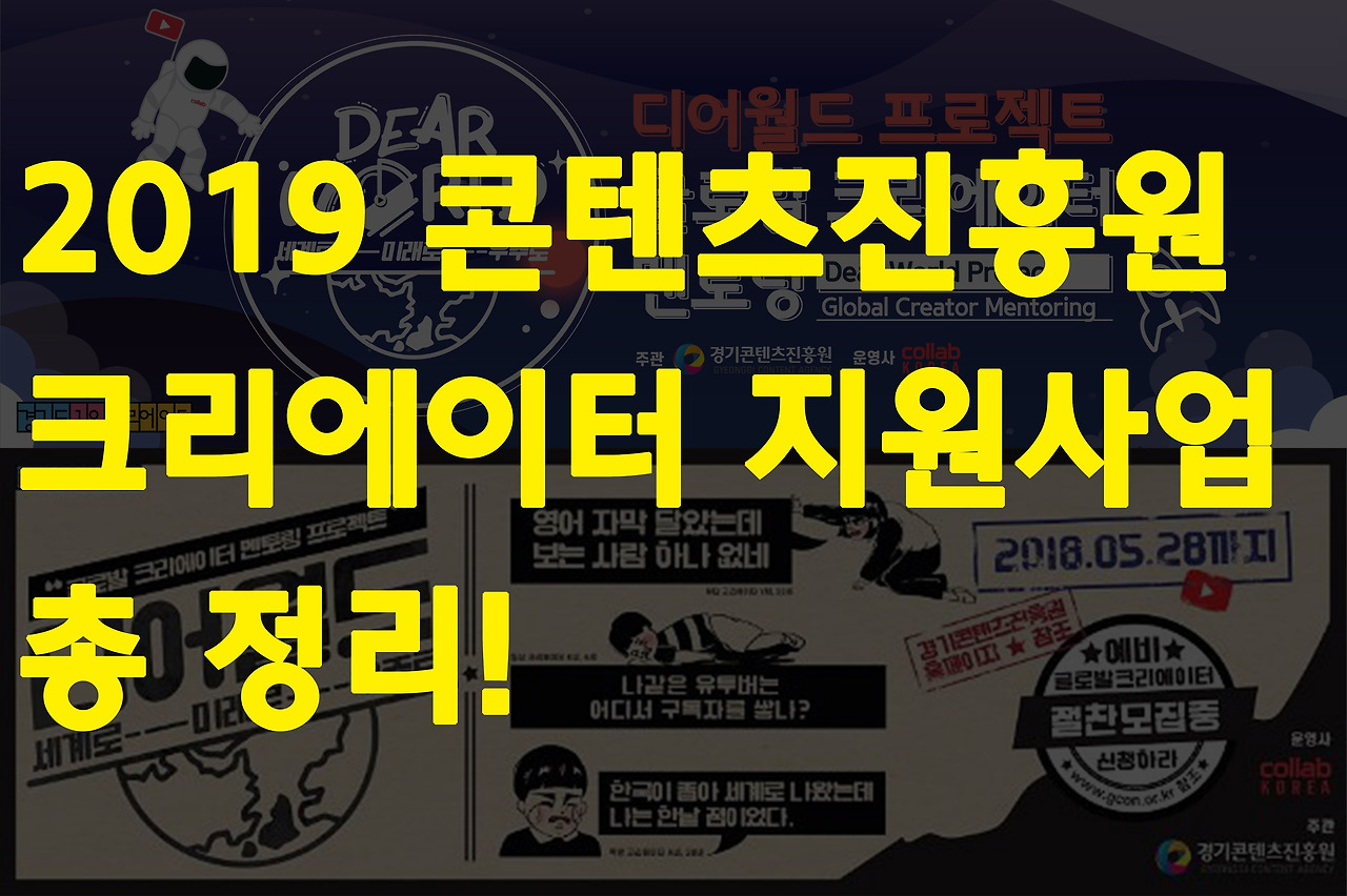 2017년부터 1인미디어와 관련된 콘텐츠 제작 지원사업의 활성화에 대해 몇 차례 글을 남겼지만, 올해 2019년은 2018년도 보다 더 많은 콘텐츠와 관련한 과업들이 쏟아지듯 나올 것이다. 제작지원부터 공모전까지 콘텐츠 크리에이터라면 탐낼만한 제작 지원사업과 포상 등의 활동. 그리고 기업들의 참여로 이루어지는 크리에이터 활동 등이 그러하다. 향후 개인의 창의 적안 아이디어와 맞물려 협업을 하기 위한 활동을 더욱 증대할 것이므로 이러한 지원 사업은 기관에서는 비포 에프터가 확실한 사업으로 자리매김하면서 더욱 그 폭을 증대할 것이다.
