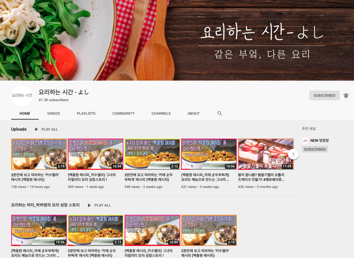 - 푸드자몽 크리에이터 채널 요리하는시간 - 요시 바로가기