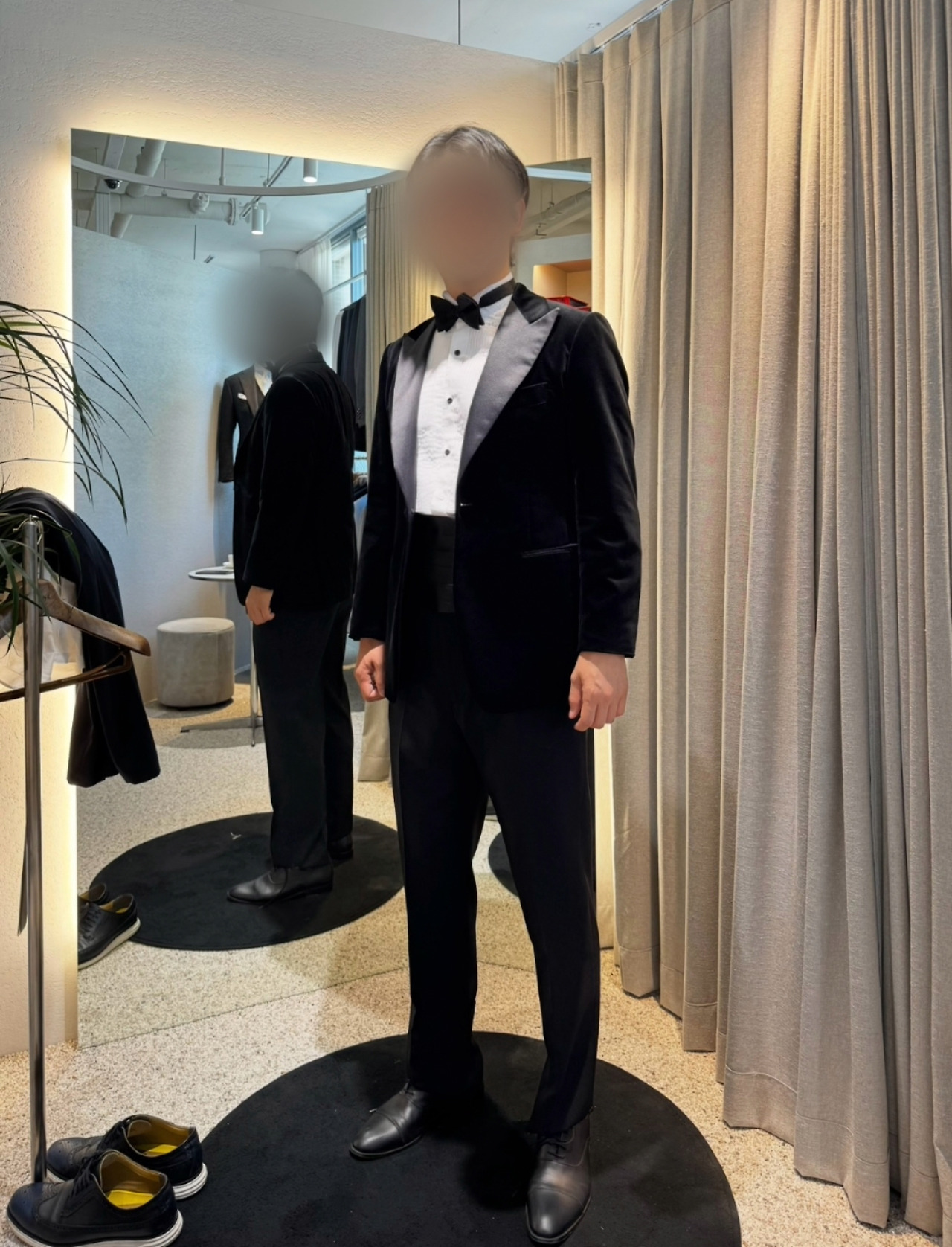 예비신랑의 키가 커서 양복을 입혀보는 재미가 쏠쏠했다. 남성 예복을 다양하게 연출할 수 있어서 놀라웠고, 특히 무제한으로 대여가 가능한 것이 정말 편리함의 끝판왕이었다. 내가 가장 마음에 들었던 착장은 검정 벨벳으로 만든 턱시도였는데 겨울이었으면 본식 때 이 착장을 꼭 넣었을 것 같다. 그렇게 우리는 각 드레스와 어울리는 착장을 만들어 무사히 예복 대여 예약을 마쳤다.