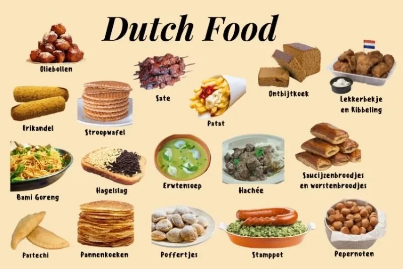 제국주의 시대에 식민지로써 인도네시아와 수리남을 지배했던 네덜란드인지라, 네덜란드에서는 인도네시아 음식과 수리남음식도 꽤나 유명하다. 덕분에 대부분의 네덜란드 사람들은 향신료가 많이 들어간 아시아 음식에 익숙한 듯하다. 위 사진에 리스트업 되어있는 바미 고랭(Bami Goreng)이나 사테(Sate)는 명확히 인도네시아 음식임이 틀림없지만, 인도네시아 사람들이 이주해서 네덜란드에서 살아온 세월이 오래된 만큼, 음식 또한 네덜란드 사람들의 입맛에 맞춰 변형된 부분도 있을 것이다.