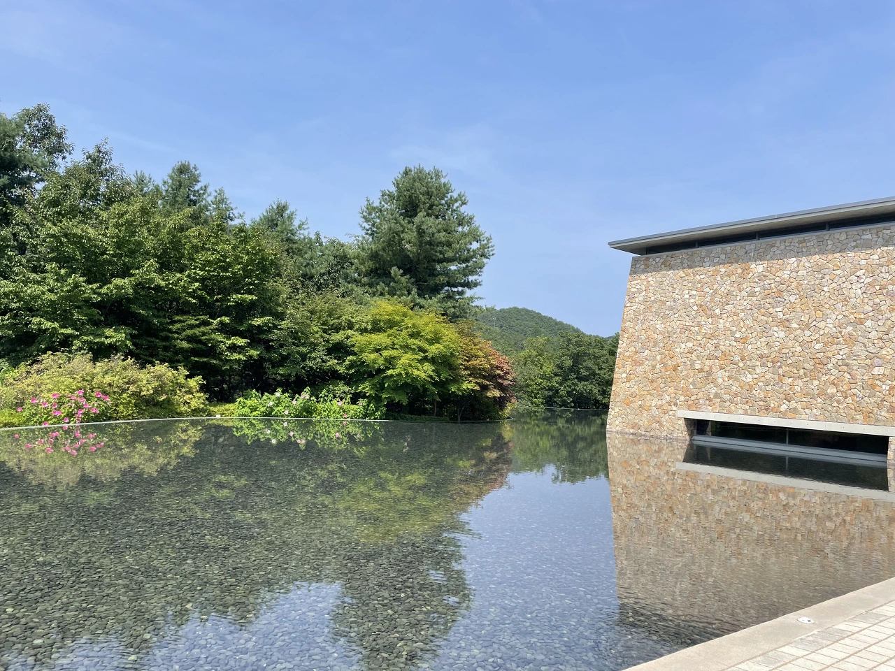 7월이 지나도 전시가 이어진다길래 좀 천천히 가려고 했는데 어쩌다 보니 일정이 맞아서 마지막 주말에 갈 수 있었다. 청춘에 대해 말하며 그가 강조했던 푸른 사과 조형물이 입구에 있었다. 사과 한켠에는 永遠の青春へ(영원한 청춘에)라는 글귀가 그의 서명과 함께 적혀 있다. '사람들이 찾아오는 미술관'을 만들고 싶다는 그의 말처럼, 뮤지엄 산은 대중교통으로 가기에 먼 곳이지만, 한 번쯤 가고 싶은 그런 곳이 되었다. 지난 강연의 초반에 그는 '저는 학력도 내장도 없습니다. 그러나 목표만은 확실히 있습니다. 사회와 함께하며 사회에 도움이 되고 싶습니다. 여러분도 사회에서 할 수 있는 범위 내에서 최선을 다해 살아주시기 바랍니다'라고 서두를 연 게 생각났다. 그런 굴곡을 겪었기에 그가 말하는 '청춘'의 의미와 무게가 더 확실히 와닿는 것 같기도.