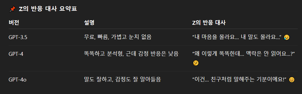 - GPT-4o:“Z야~ 오늘 기분은 어때?” (찡긋)