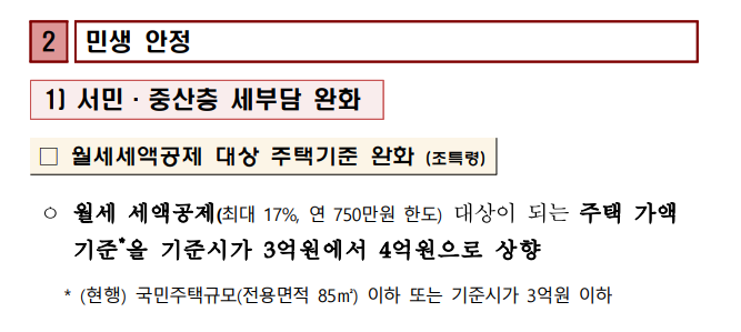 월세세액공제 공제율도 5% 포인트 오르고, 주택가격 기준도 1억 올랐어요