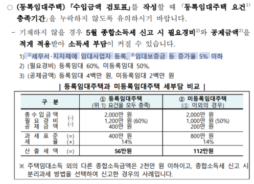 수입금액 검토표에 '등록임대주택 요건 충족기간' 꼭 기재하세요!