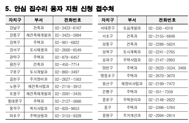 융자 신청을 위해서는 △융자신청서, 공사견적서, 현장사진(공사 전) △건축물대장, 등기부등본(토지, 건물) △지원조건 동의서, 개인정보 수집·이용 동의서를 제출해야만 하는데요.