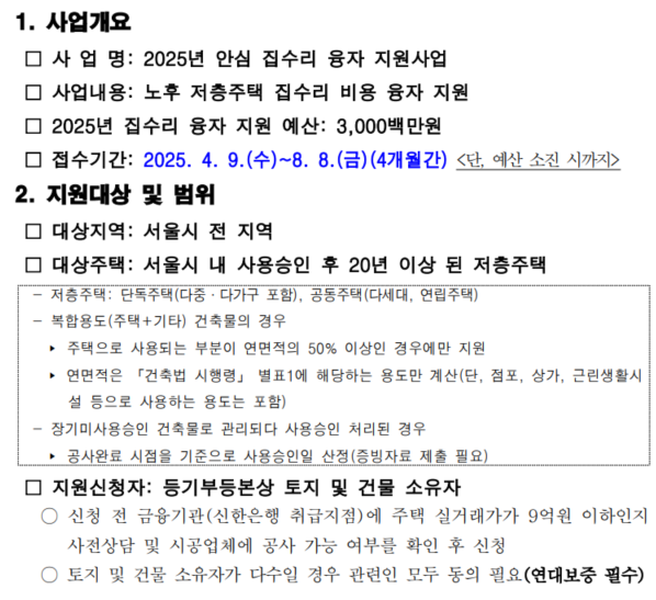 <2025년 안심 집수리 융자 지원사업> 8월까지 접수합니다!