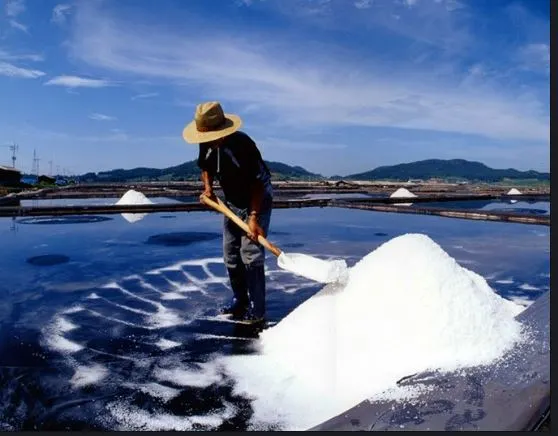 염전에서 소금 생산 중