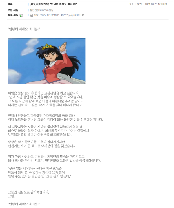 (퇴사하며 보낸 메일이다. 이후 평생 먹을 욕을 다 먹었다.)