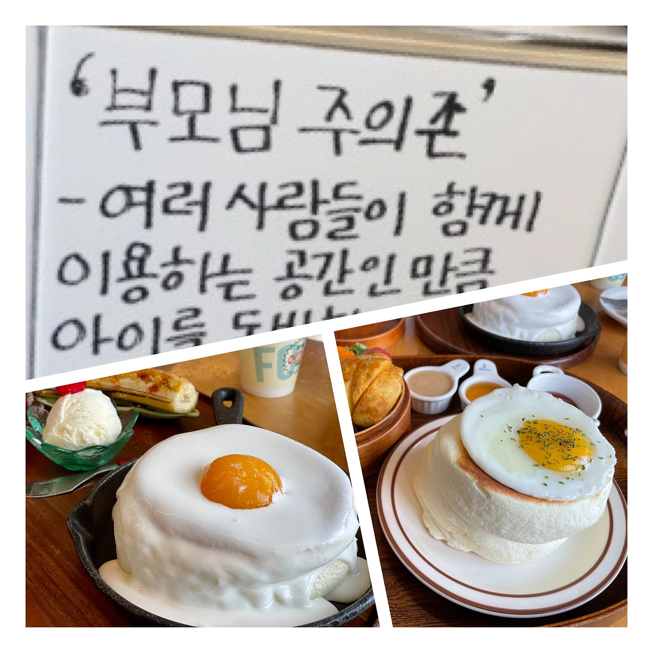 그곳은 노키즈존이 아니라 부모님 주의존이었다. 업주의 어려움과 고민이 엿보였다. 그냥 다른 가게처럼 노키즈존이라 써 붙일 수도 있었을 텐데 ‘’부모님 주의존’’이란 재치 있는 표현을 쓴 주인의 따뜻한 마음과 배려가 느껴졌다. 배려란 서로가 조금씩 불편함을 나누는 것일 테니.
