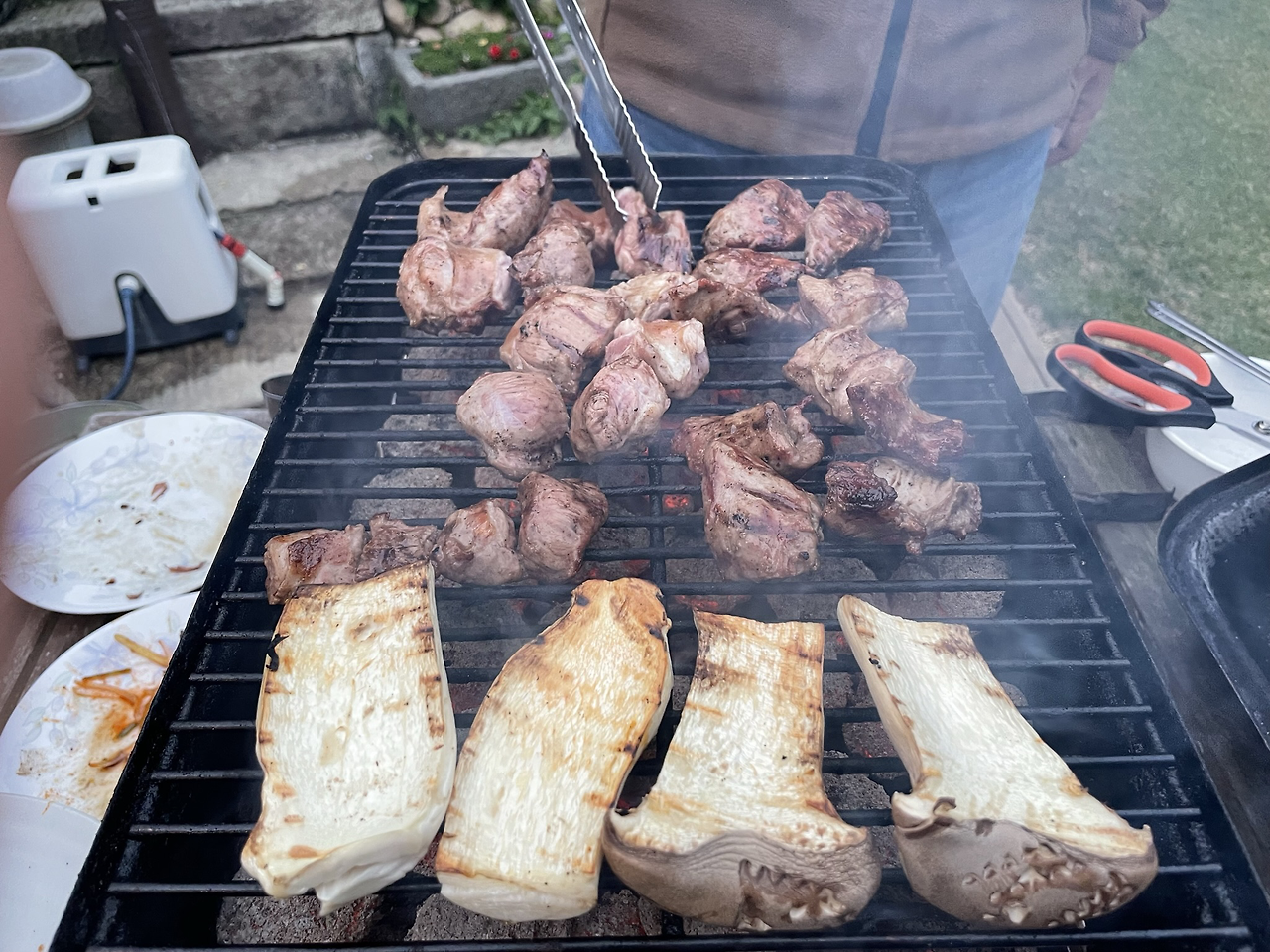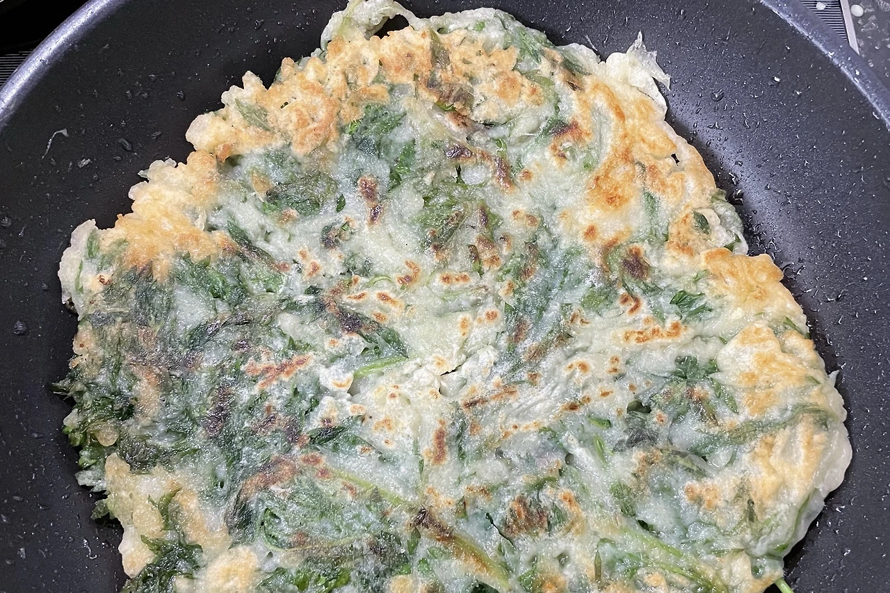 해가 기울기 시작하면서부터 사돈데이의 하이라이트인 바비큐 파티가 시작됐다. 어머니들이 뜯으신 참나물과 두릅을 데쳐 쌈 대신 내놓았다. 쑥으로는 부침개를 부쳤다. 쑥이라고 뜯었는데 쑥향이 나지 않아 내심 ‘이거 쑥 맞아?’ 반신반의했는데 막상 전으로 부치니 쑥 향이 싹 올라왔다. 이것 참 별미네! 사돈어른이 아니었다면 몰랐을 봄의 맛이었다.
