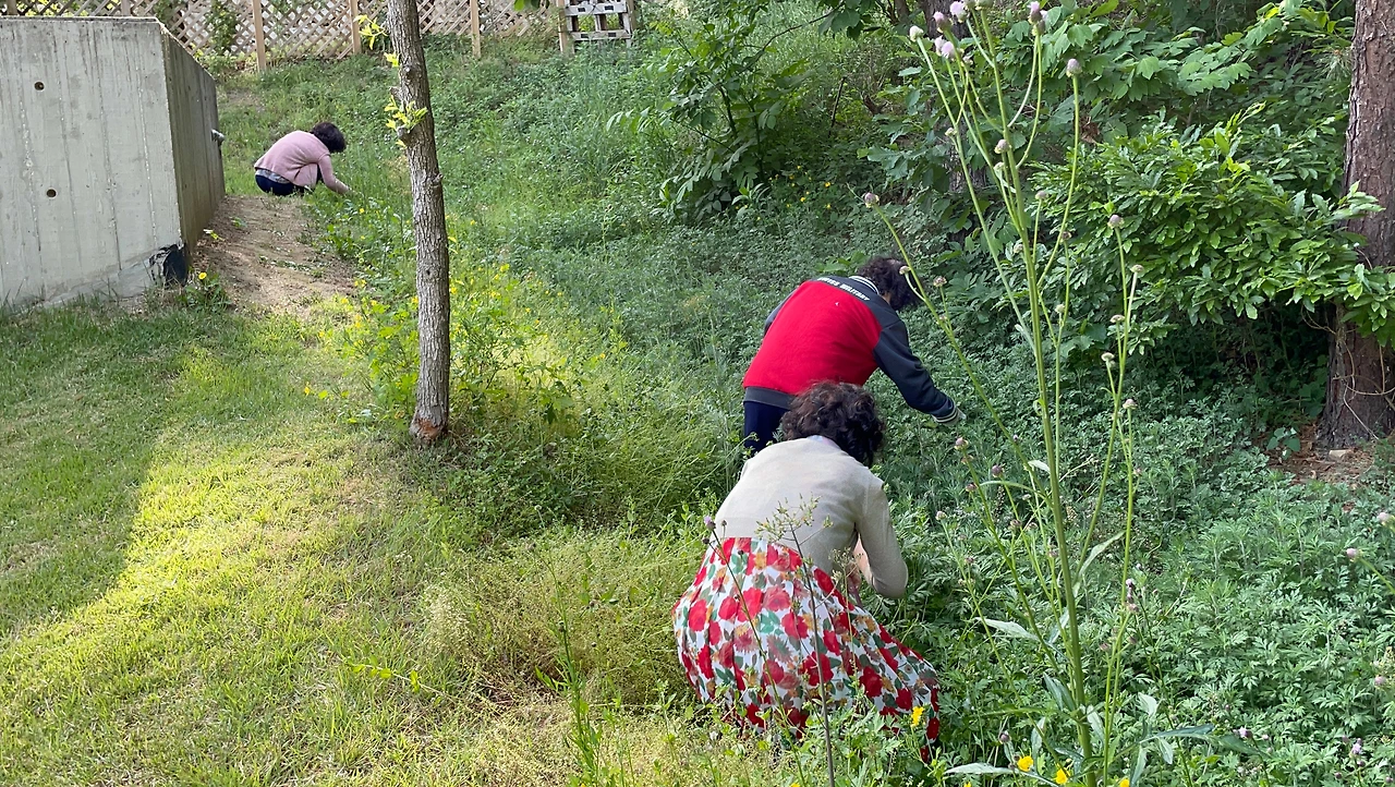 세 어머니들은 늘 그렇듯 동생네 시어머니의 주도하에 집 주변에 지천인 쑥이며 두릅, 참나물 등을 뜯으셨다. 철이 지나 너무 늦은 건 아닌지, 너무 쇤 건 아닌지 알지 못해 방치해둔 무성해진 풀숲 속에서 사돈어른은 필요한 것들만 딱딱 찾아내셨다. 평소엔 관심도 없던 우리 엄마도, 바다생물만 잘 아시는 부산 출신 어머님도 얼떨결에 나물을 한 바구니 가득 채우셨다. 이런 게 재미 아니겠냐며 내친김에 정원 잡초도 뽑고, 꽃나무 잎도 솎으셨다. 부모님에겐 노동인 정원 일조차 어머니들에겐 소소한 즐거움이었다. 봄의 정원은 꽃과 어머니들의 활기로 넘쳤다.