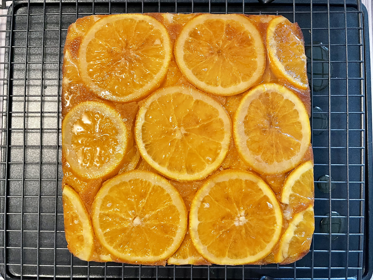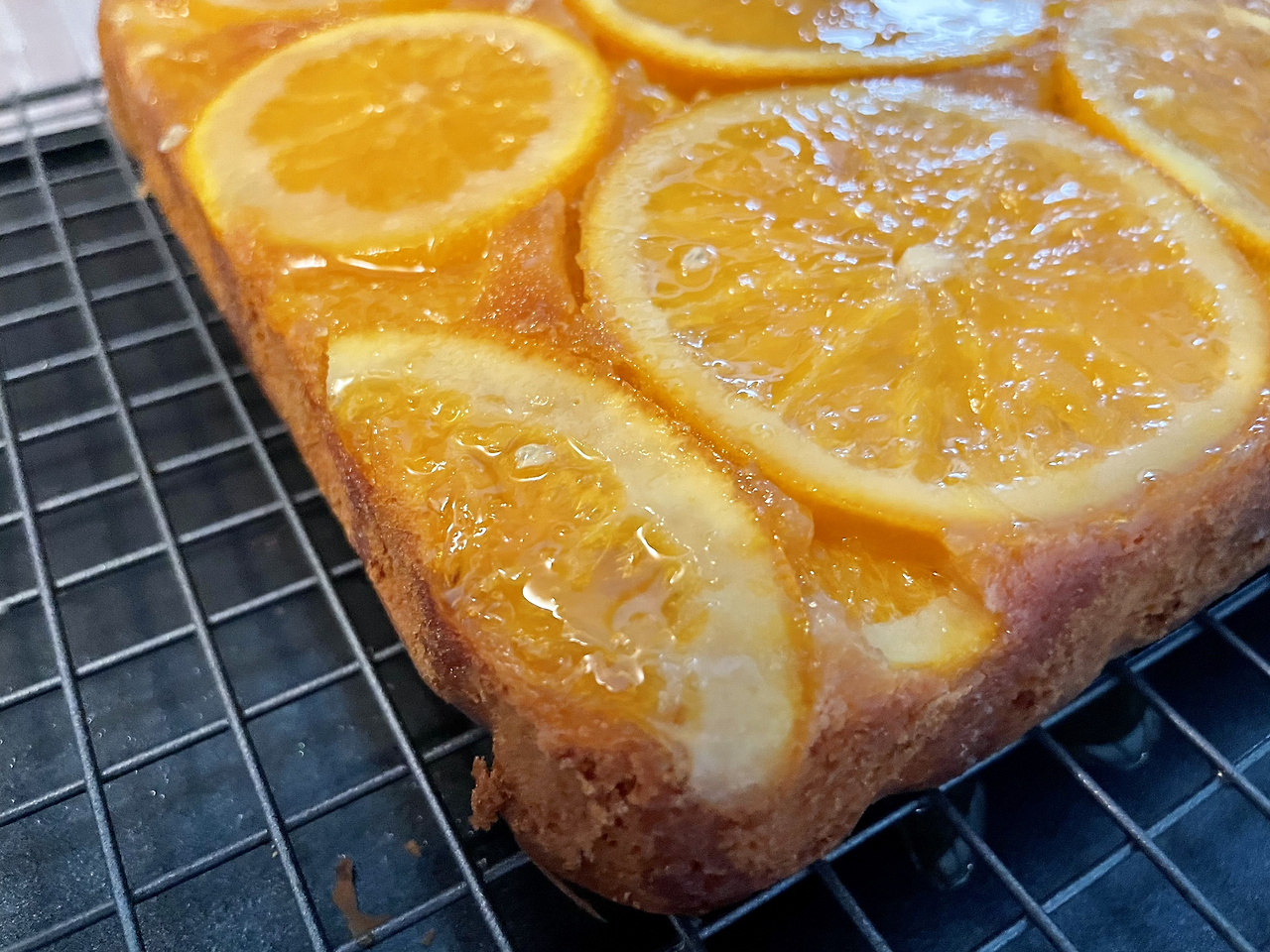 광파오븐 창 너머로 몸집을 키우며 노릇노릇 구워져 가는 케이크를 보면서 내 기대도 한껏 커졌다. 오렌지 향을 머금은 달콤한 케이크 냄새가 온 집안으로 퍼지는가 싶더니, ‘띵!’ 오븐의 타이머가 종료를 알렸다. 오렌지 케이크는 ‘업사이드 다운 케이크 (upside down cake)’로 우리말로 바꾸면 거꾸로 케이크쯤 되겠다. 말 그대로 거꾸로 있기 때문에 뒤집어줘야 한다. 두근두근 떨리는 마음으로 뜨거운 케이크와의 한판 뒤집기!