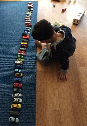 자동차 뿐만아니라, 블럭이나 다른 장난감 등도 색깔별로 분류해서 늘어놓았고, 누군가 그것을 건드리면 극도로 짜증을 냈다.