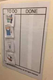 대학에서 행동치료 공부 중 알게된 기법인데, 자폐아동과 효과적으로 의사소통을 할 수 있도록 일상생활에 필요한 행동이나, 요구사항 같은 것을 그림으로 제시하며 대화하는 것이다.