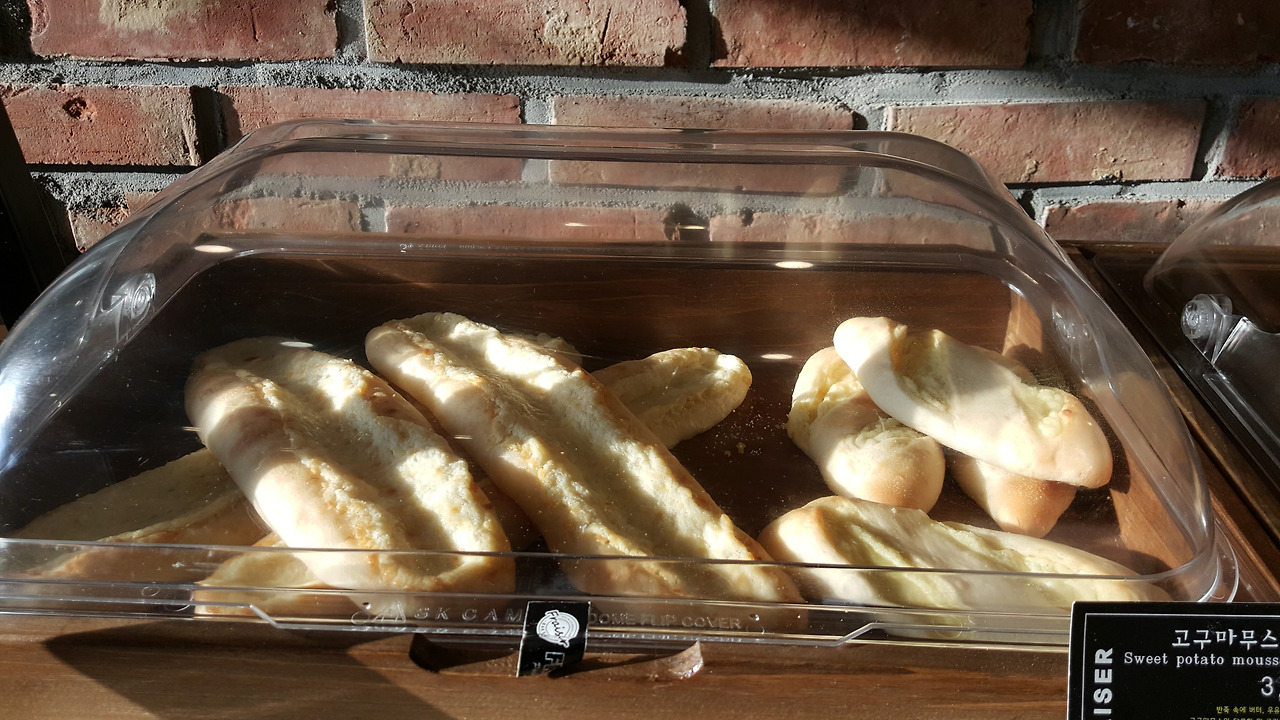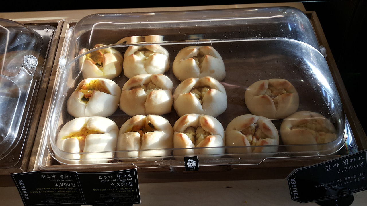 치즈와 단호박이니 감자니 하는 새로운 것들이 호밀빵 안에 가득 담겨 보기에도 먹음직스럽게 진열이 되어있다.