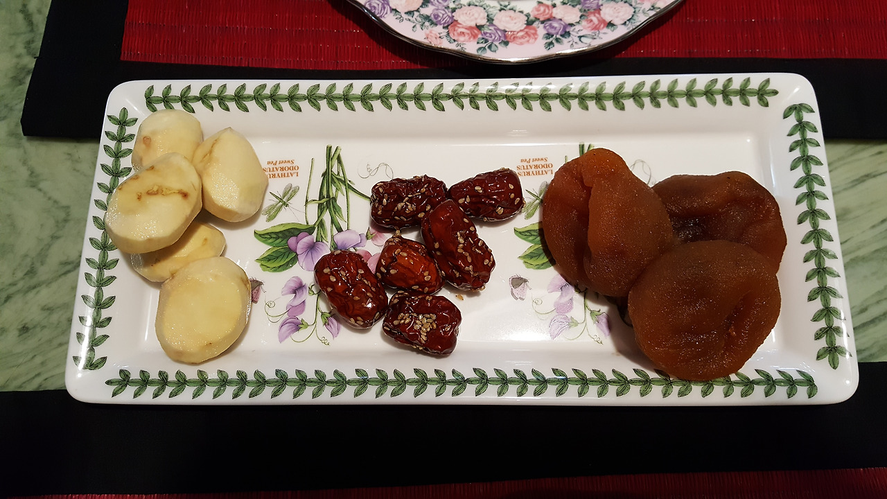 생율은 아삭하고 달았다. 직접 만들었다는 대추도. 반건시도 질척하니 달큼 달큼 자꾸 당기는 맛이었다.