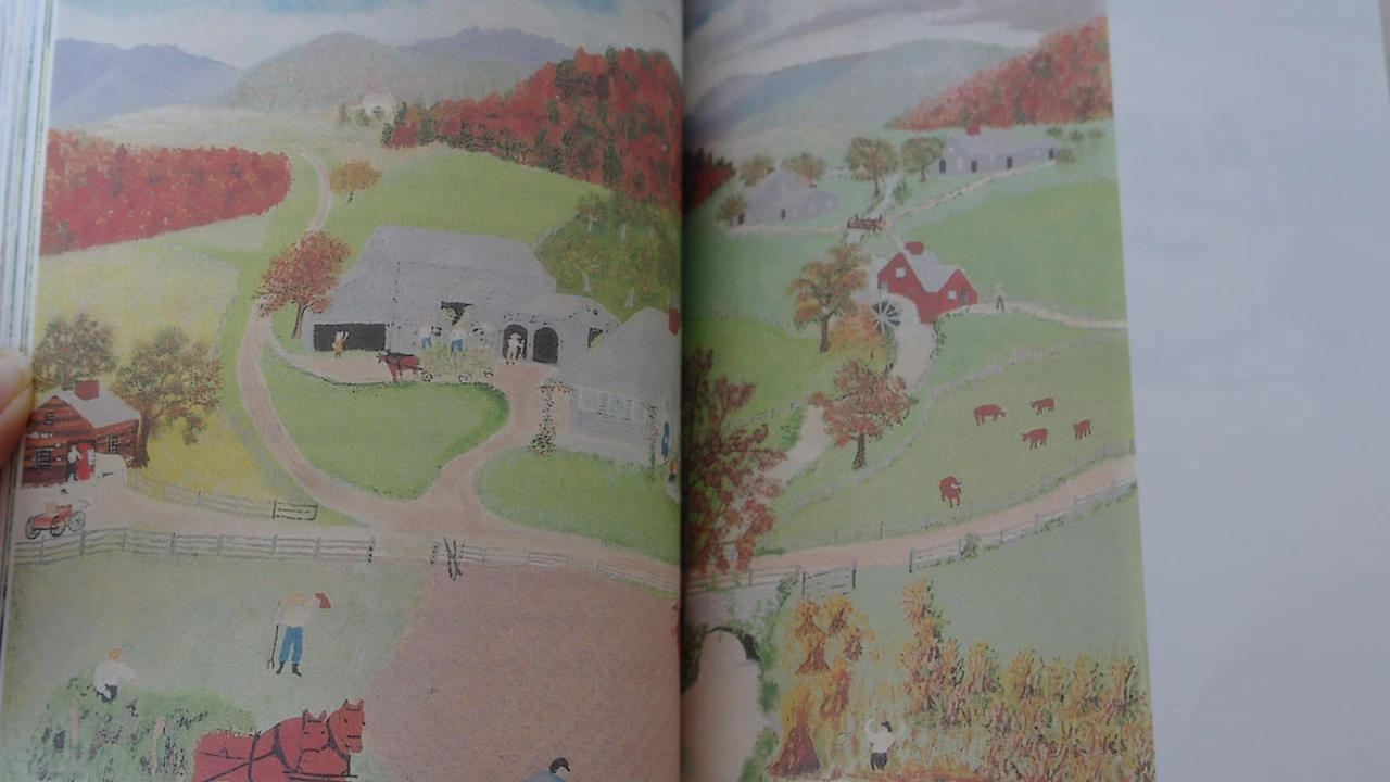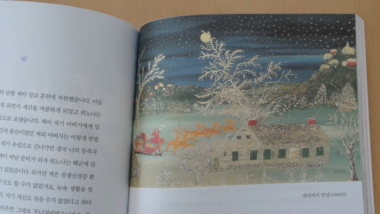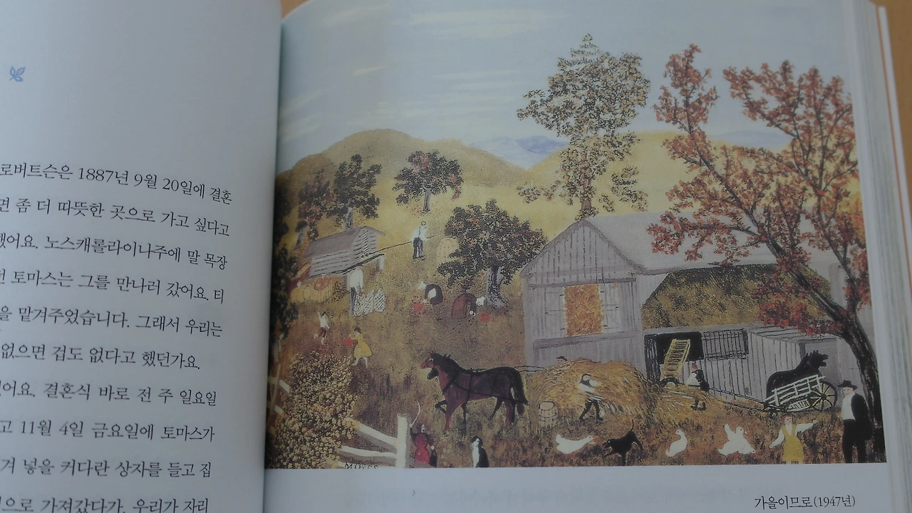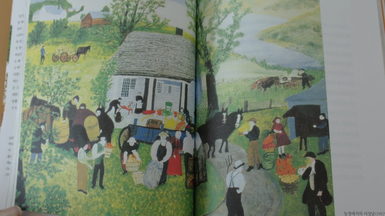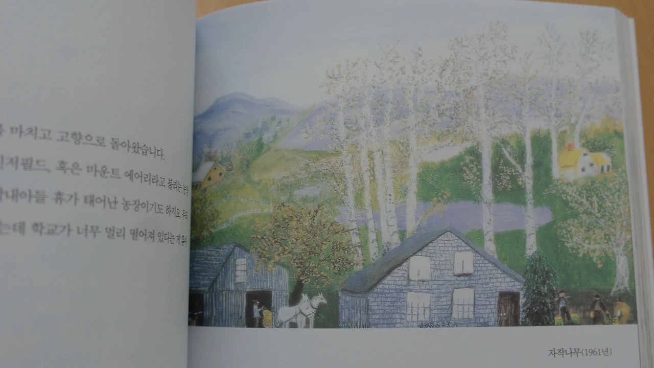 책장을 넘길 때마다 모지스 할머니가 그린 예쁜 그림이 차고 넘친다.
