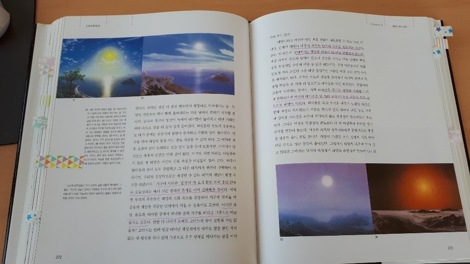 이 책은 컬러판과 흑백판이 있다. 컬러판이 가격이 좀 비싸다. 그러나 우주적 호기심을 일으키고 우주의 아름다운 행성들을 볼 수 있는 컬러를 추천한다.