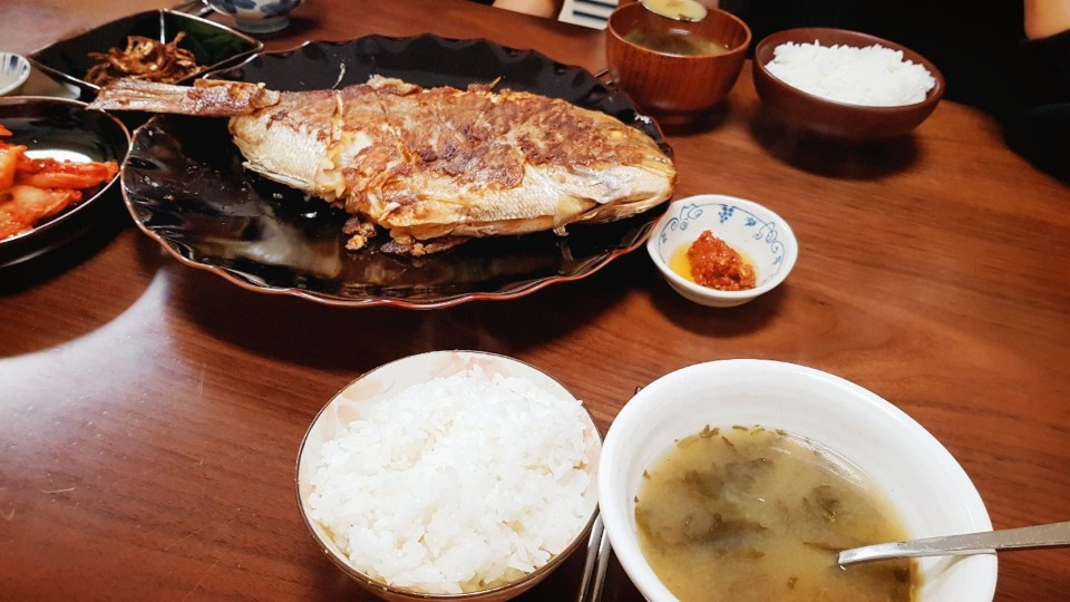 식탁 위에 덩그러니 돔 구이 한 접시. 그리고 갓 지은 밥뿐이었으나,