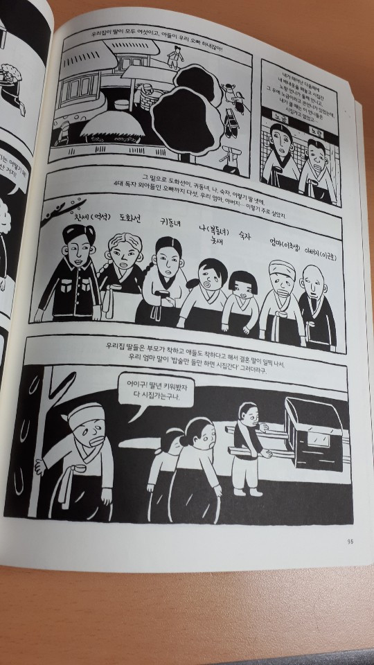 다만 만화 속의 할머니와 어머니가 북한이 고향이어서 그곳의 사투리와 인심. 그리고 피란길의 힘든 삶 등은 또 다른 특수한 것이어서 흥미로왔다.