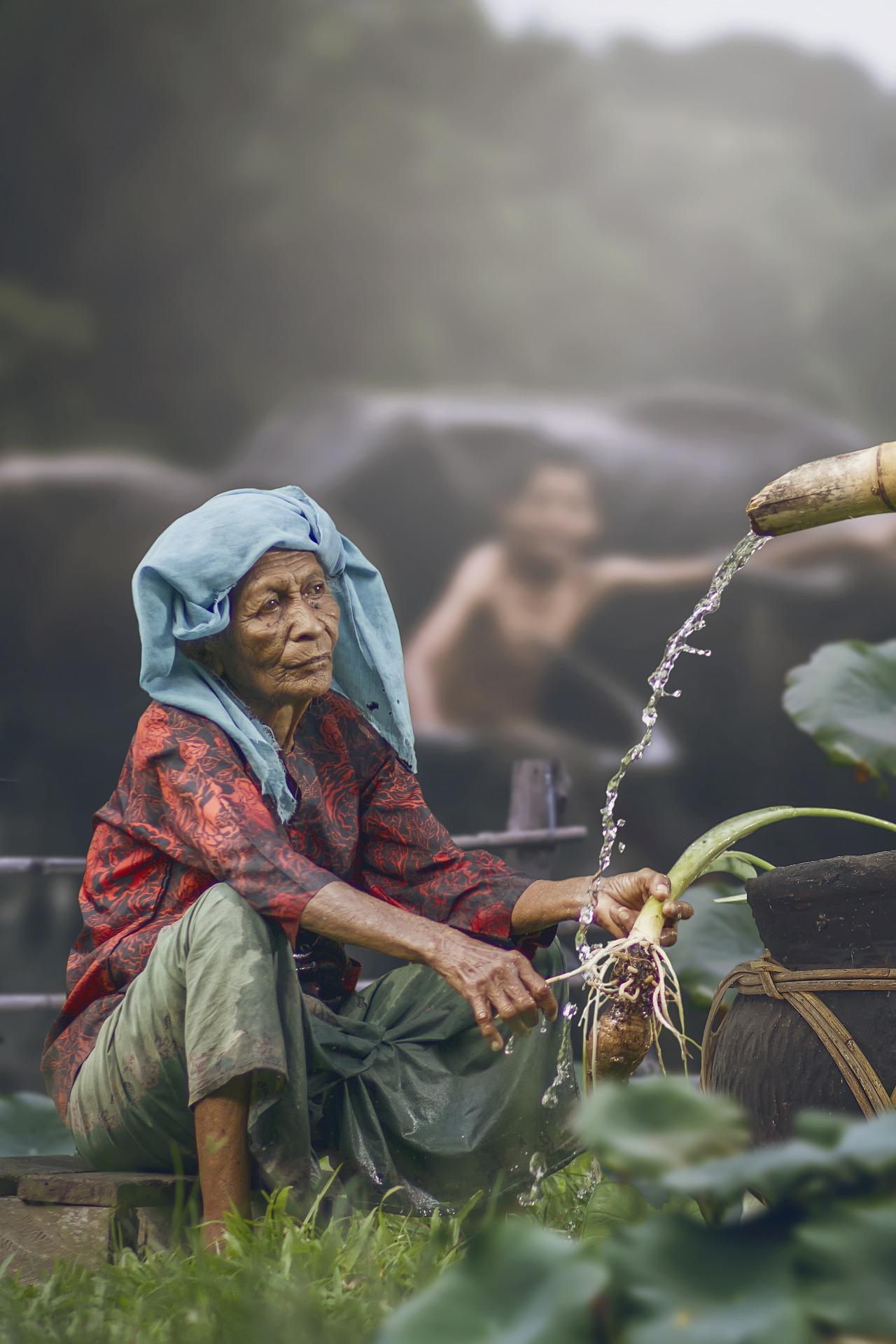 얇은 바지 안에서 겨우 버티고 섰는 앙상하게 마른 두 다리와 주름진 손등에 불퉁불퉁하게 솟은
