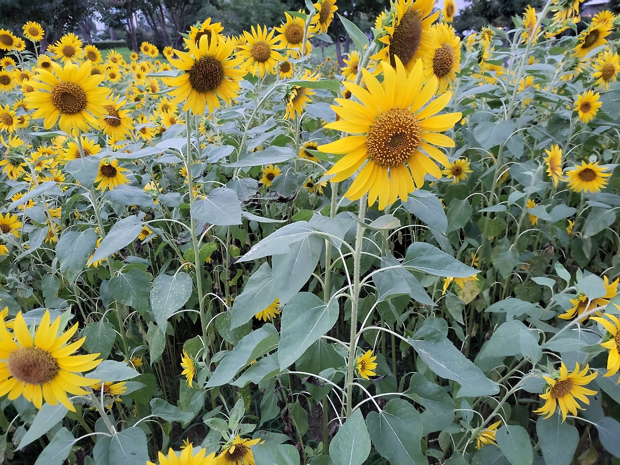 그런다. 게다가 해바라기 얼굴이 길게 축 늘어뜨려져서 산책로를 걷는 사람들 몸에 이리저리 부딪힌다.