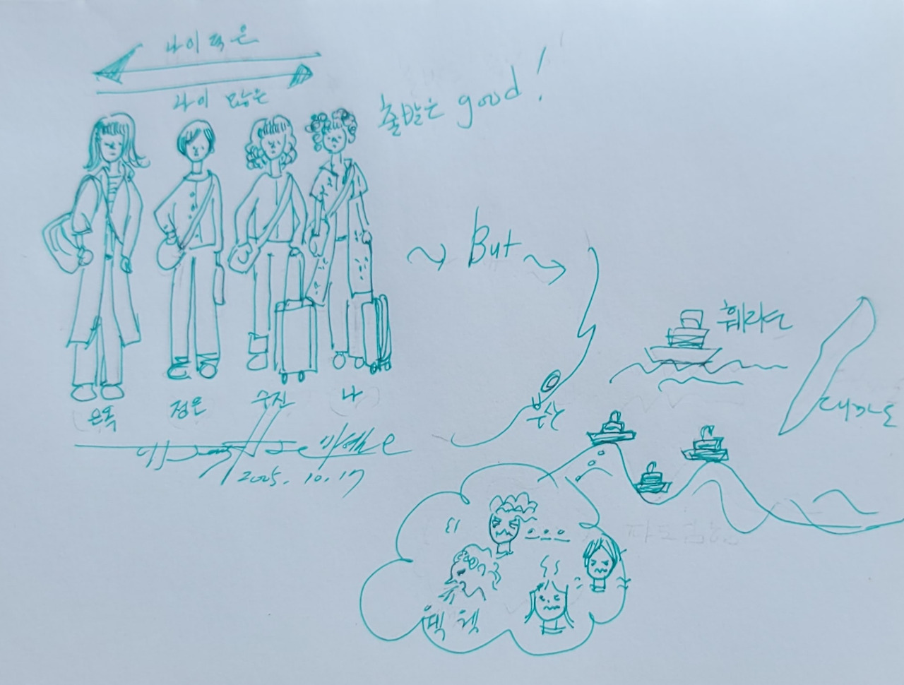 "배가 크네~~ 멀미 안 하겠네" 서로 마주 보며 단번에 밝아지는 얼굴.