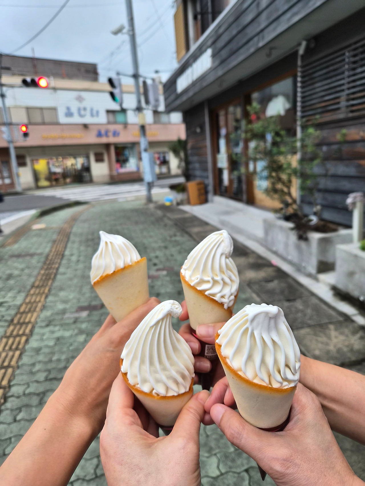 잠시 후 우리는 아이스크림을 각자 한 개씩 들고 길을 건넜다. 그런데 습한 바람에 그것이 녹아서 대책없이 흘러내리기 시작한다. 도저히 입과 눈을 뗄 수 없는 아이스크림의 구애. 여차하면 손에 다 묻을 기세여서 아이스크림에 입을 거의 붙이고 걷는다. 그렇게 버스 앞에 도착하니... 우리가 탔던 버스기사가 창문으로 우리를 경계하는 눈빛으로 바라본다.