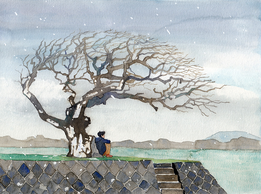 오래된 팽나무 곁에 바람을 등지고 나란히 앉았다. 바람에 흩어지는 흰 눈을 함께 바라보며, 내게 닥쳐오는 시련을 견뎌낼 작은 힘을 얻었다.