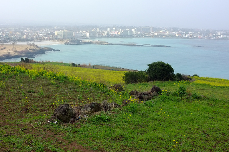 해변을 따라 나란히 이어지던 길은 바닷가에 솟아난 작은 오름으로 나를 이끌었다. 짙푸른 소나무 숲 아래로 이제 막 잠에서 깨어난 어린 풀잎과 노란 유채가 온몸으로 봄을 환영하고 있었다. 계절의 초침이 봄으로 향할수록 하루가 다르게 아름다워지고 있는 서우봉이 바로 그곳에 있었다.