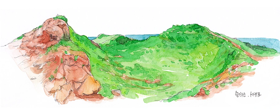 형제섬이 지척에 보이는 사계해안을 지나 송악산을 올랐다. 정상으로 향하는 급하지 않은 오르막길 오른쪽에는 송악(松岳)이라는 이름에 걸맞게 소나무 숲이 울창했다. 숲 반대쪽 벼랑 아래에는 드넓은 바다가 펼쳐져 있었다. 선명하고 푸른 6월의 제주. 손등만 까맣게 타들어 가는 게 안타까워서 손바닥을 하늘로 향했다. 두 손 가득 쏟아지는 햇살로부터 이제 막 시작되는 제주의 여름이 느껴졌다.