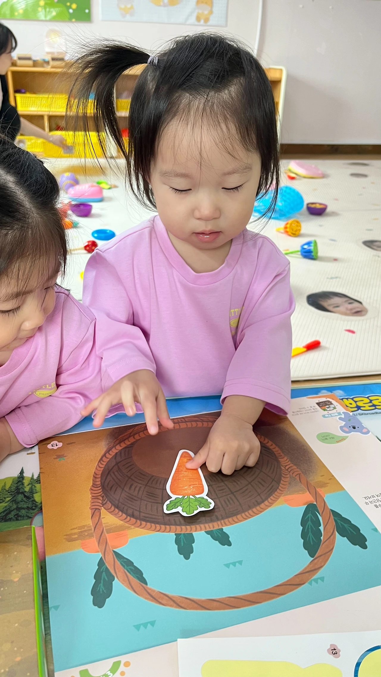 “서린이가 먼저 교재에 스티커를 붙였는데