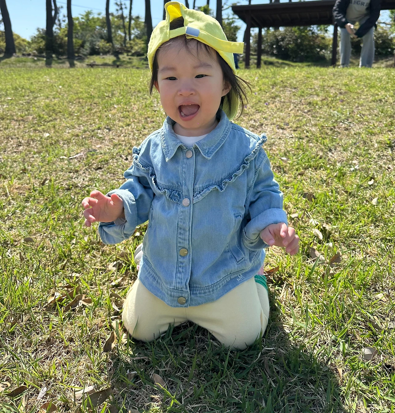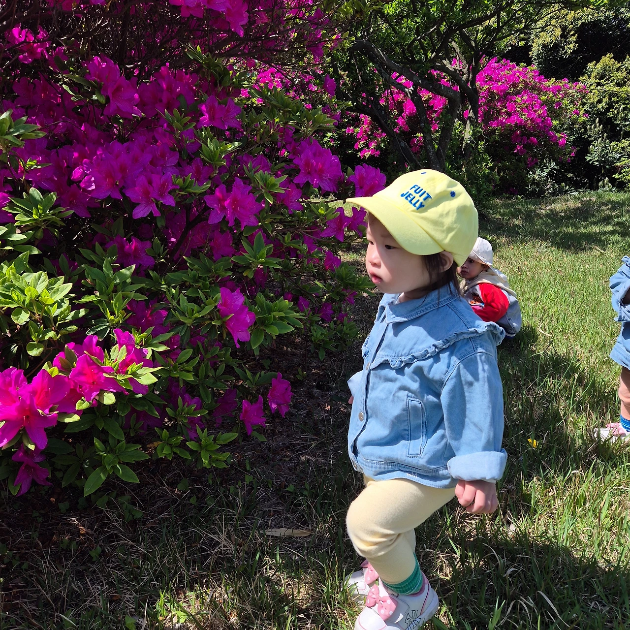 분홍 모자에 통통한 볼이 햇살에 반짝이고