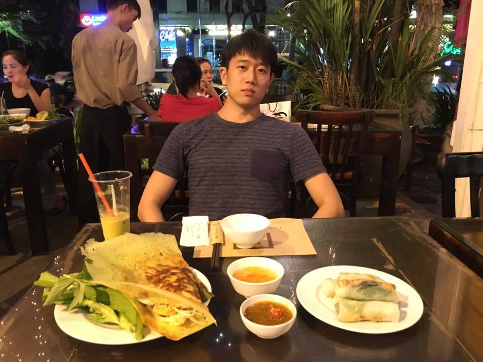 저녁에는 근처에 친구가 가보자고 하는 레스토랑으로 향했다. 깔끔하고 깨끗한 느낌의 레스토랑이었고, 쌀전병으로 감싼 돼지고기 스프링롤, 얇은 반죽에 해산물과 야채를 감싸 소스를 찍어먹는 반쌔오(?), 그리고 해산물 볶음밥을 먹었다.