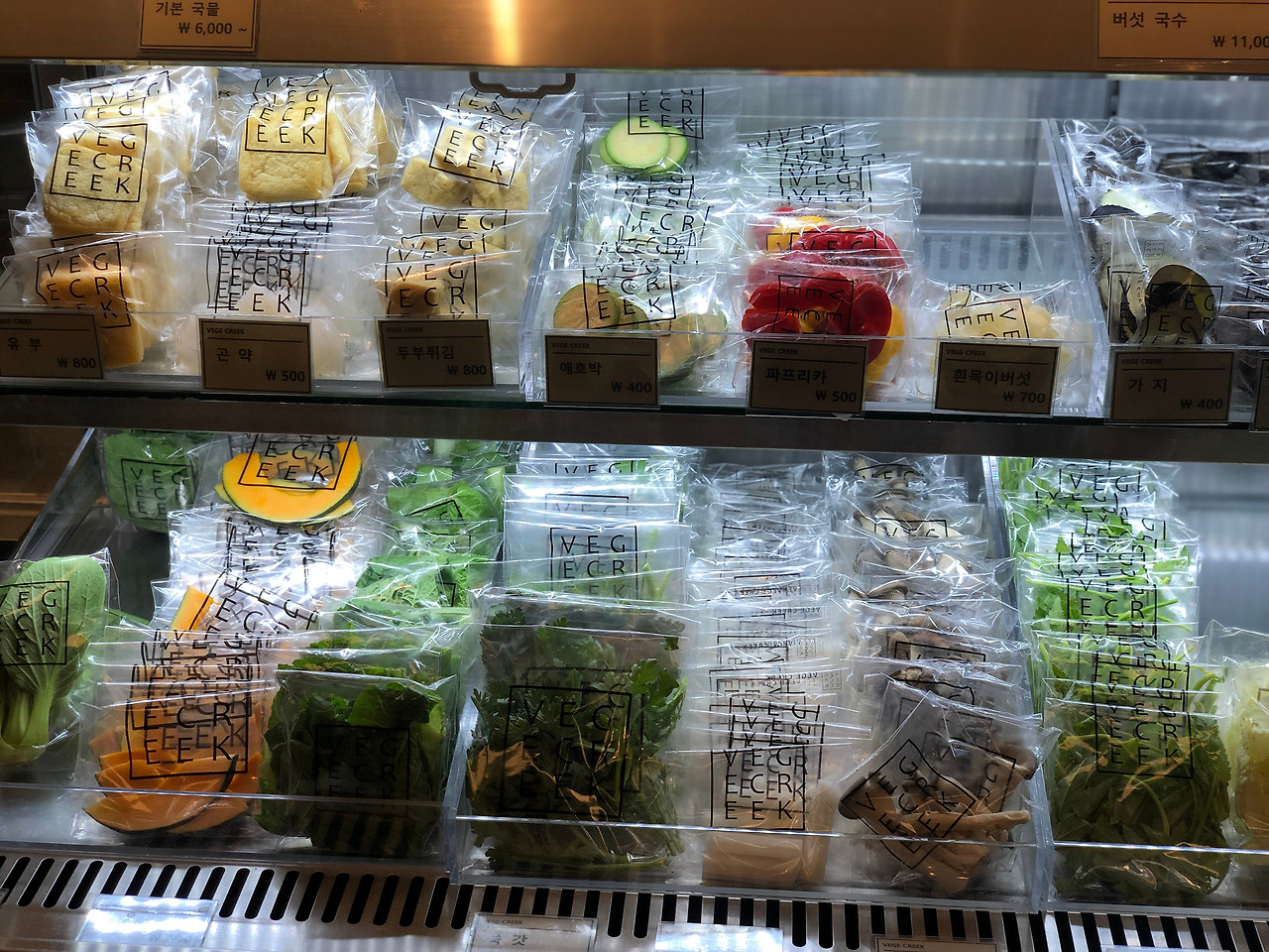 그리고 마라탕가게처럼 토핑들이 쫙 진열되어있다.