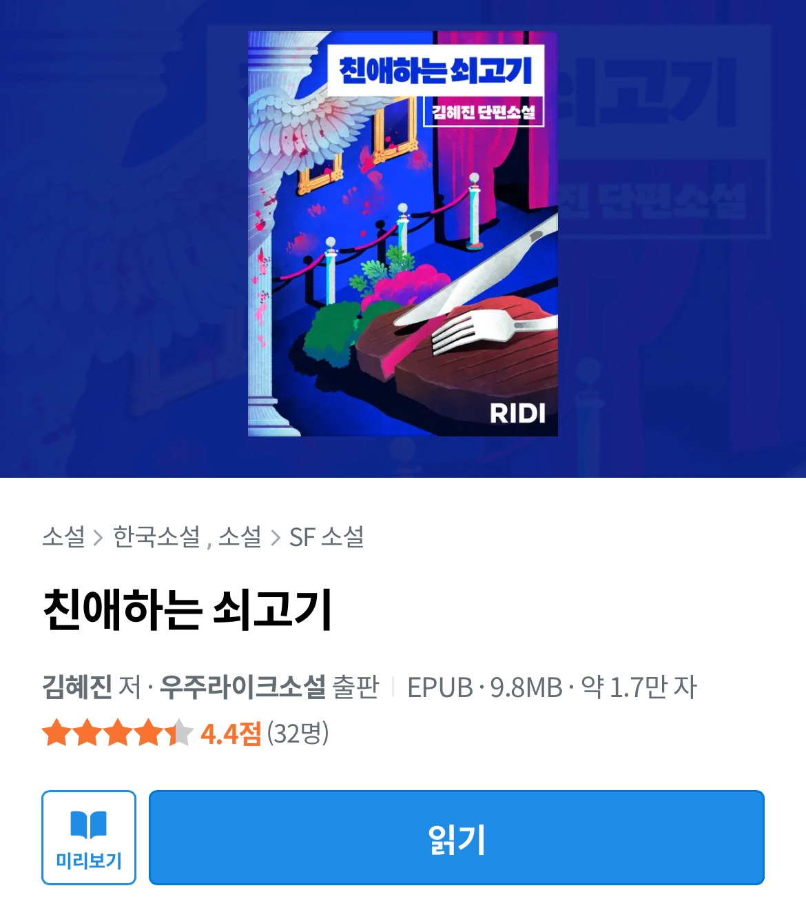 아무튼 <친애하는 쇠고기>와 <환상의 사이>의 성격이 너무 비슷하여..저 책을 출판한 출판사 ‘우주라이크소설’을 검색했더니,