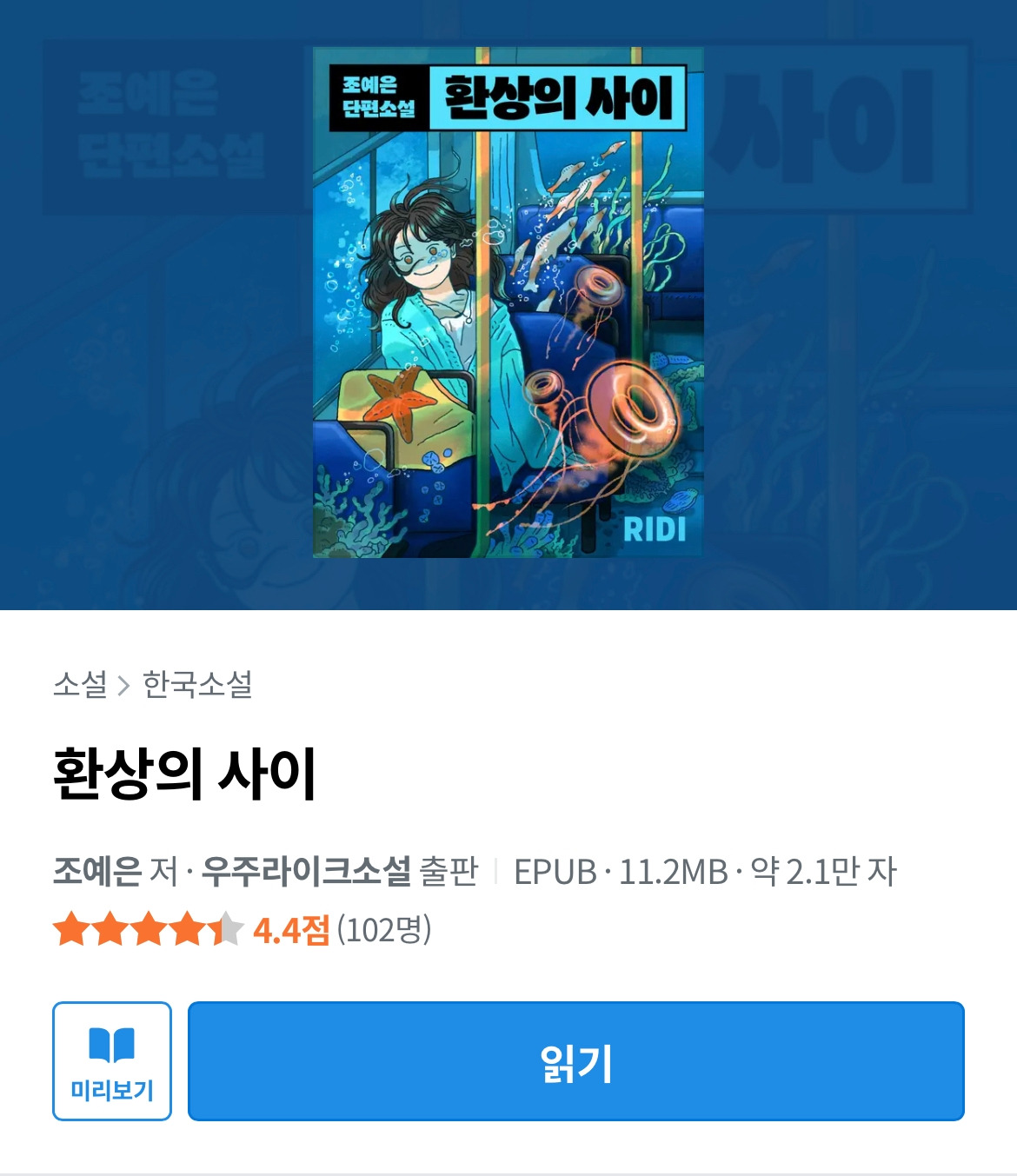 <환상의 사이>는 가족이 전부 ‘물’과 관련하여 안좋은 사고를 당했기에 물을 싫어하는 주인공이 인어 ‘사이’를 만나게 되는 내용이다. 인어의 정체는 스포..짧으니 읽어보시길.
