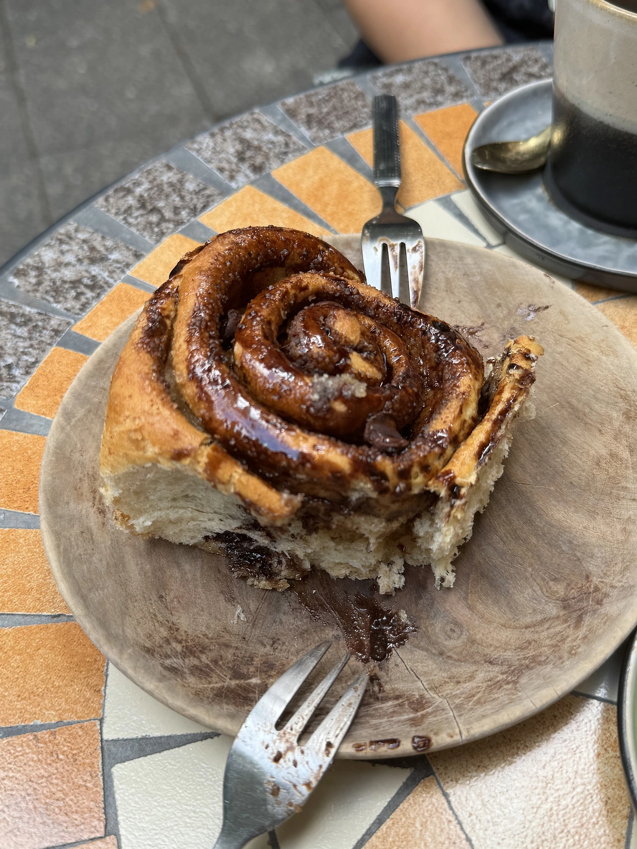 그 무엇과도 비교할 수 없다.. 부드러운 우유를 가득 넣은 부드러운 빵에 큰 입자의 시나몬 슈가들이 아주 약간의 매운맛과 엄청난 단 맛을 냈다. 너무 맛있어서 자꾸 먹고 싶은데 동시에 줄어드는 게 아까운 마음.. 내가 이제까지 한국에서 먹어봤던 그 평면적인 모양과 맛을 가진 시나몬롤은 진짜 시나몬롤이 아니었던 것이다.