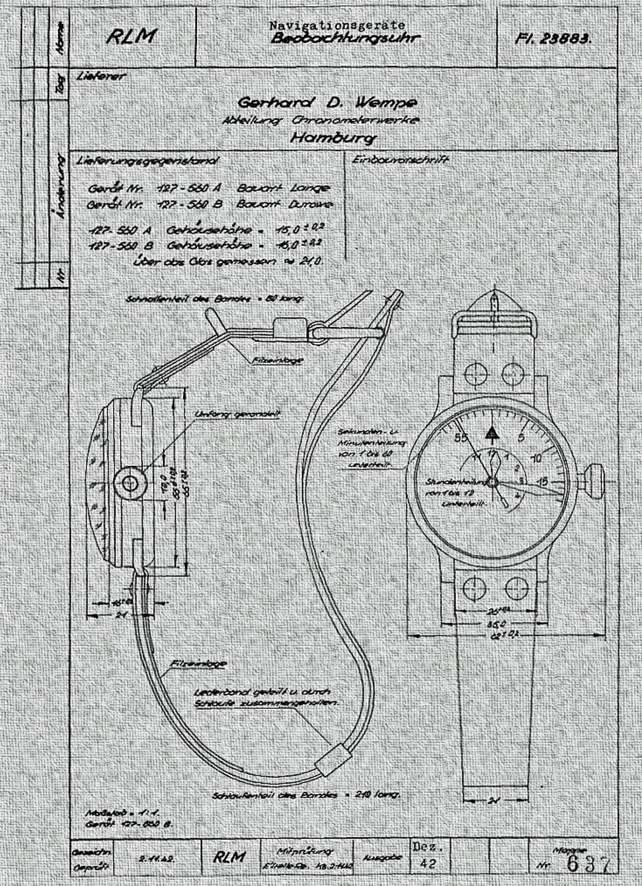 지금까지 남아있는 타입B의 RLM 도면에는 “Wempe” 표기가 남아 있어, B-Uhr 표준화 과정에 깊이 관여했음을 짐작할 수 있습니다.