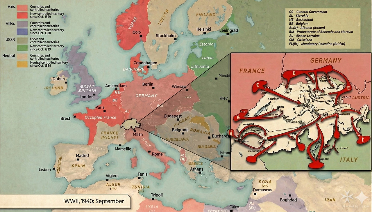 당시 독일 군부는 프랑스 국경의 철옹성 '마지노선'을 우회하기 위해 중립국인 스위스를 통과하는 방안을 검토하기도 했습니다.