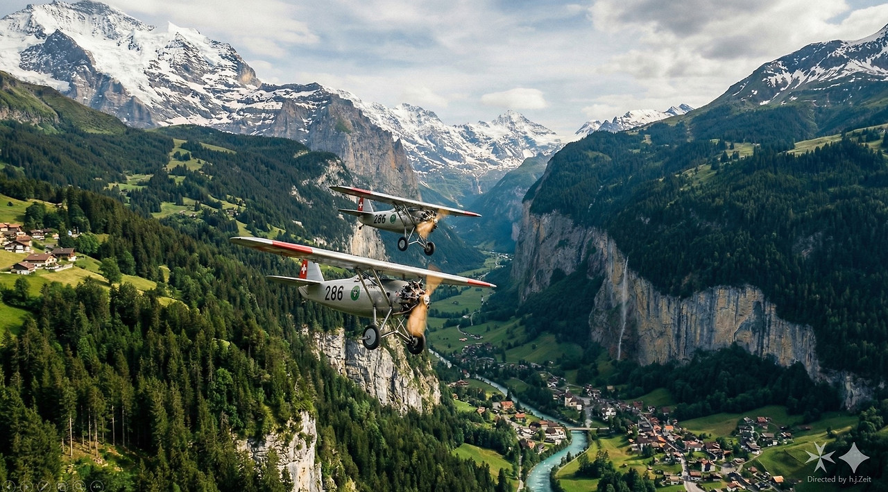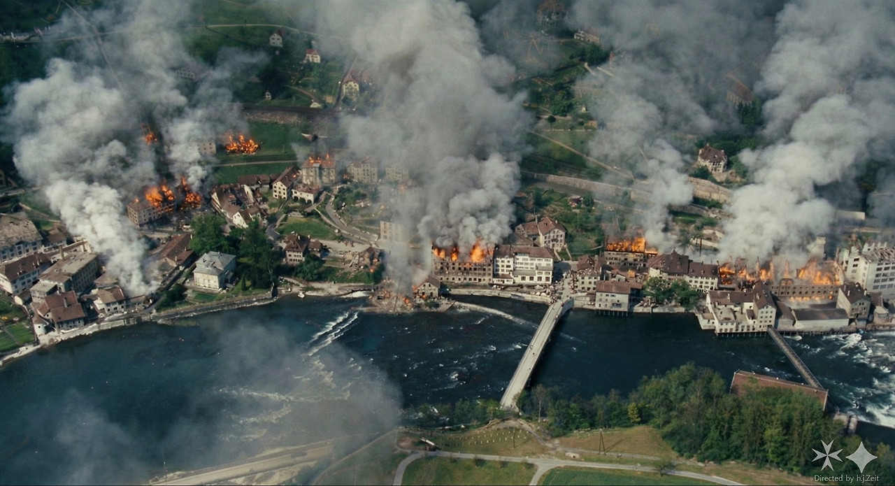 손상된 B-17 폭격기가 스위스 영공에 들어오자 스위스 Bf-109 전투기가 나타나 연합군 폭격기를 압류하는 뒤벤도르프 공군기지로 유도했는데, 뒤따라온 미군 P-51 머스탱 전투기가 스위스 전투기를 공격하여 한 대를 격추하고 다른 한 대에 손상을 입힌 것입니다.