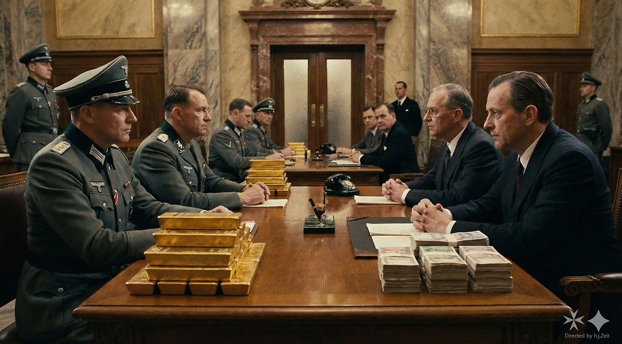 이 자금을 마련하기 위해 나치 독일은 점령지를 무자비하게 약탈했습니다. 훗날 연합군이 독일 점령 후 발견한 메르커스(Merkers) 소금광산에서는 금괴 7천 자루와 각종 예술품은 물론, 수용소 유대인들에게서 빼앗은 금반지와 금이빨까지 발견되어 충격을 주었습니다. 스위스는 이러한 약탈 자산을 세탁하고 환전해 주는 창구 역할을 했습니다.