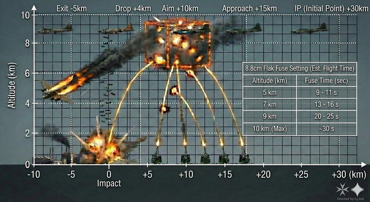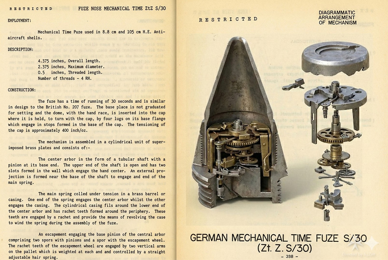 연합군의 전략폭격기를 요격하는 Flak이 위력을 발휘하려면, 포탄이 정확한 고도에서 터지도록 제어하는 시계태엽신관(Mechanical Time Fuzes)이 필수적이었는데, 이는 기계식 크로노그래프 무브먼트와 작동원리가 비슷합니다.